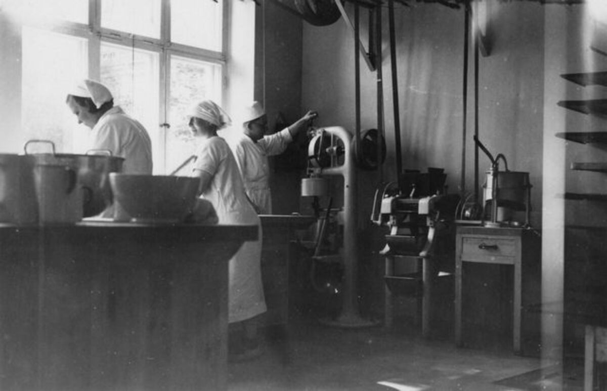 Leipomon henkilökuntaa työn touhussa (v. 1934)